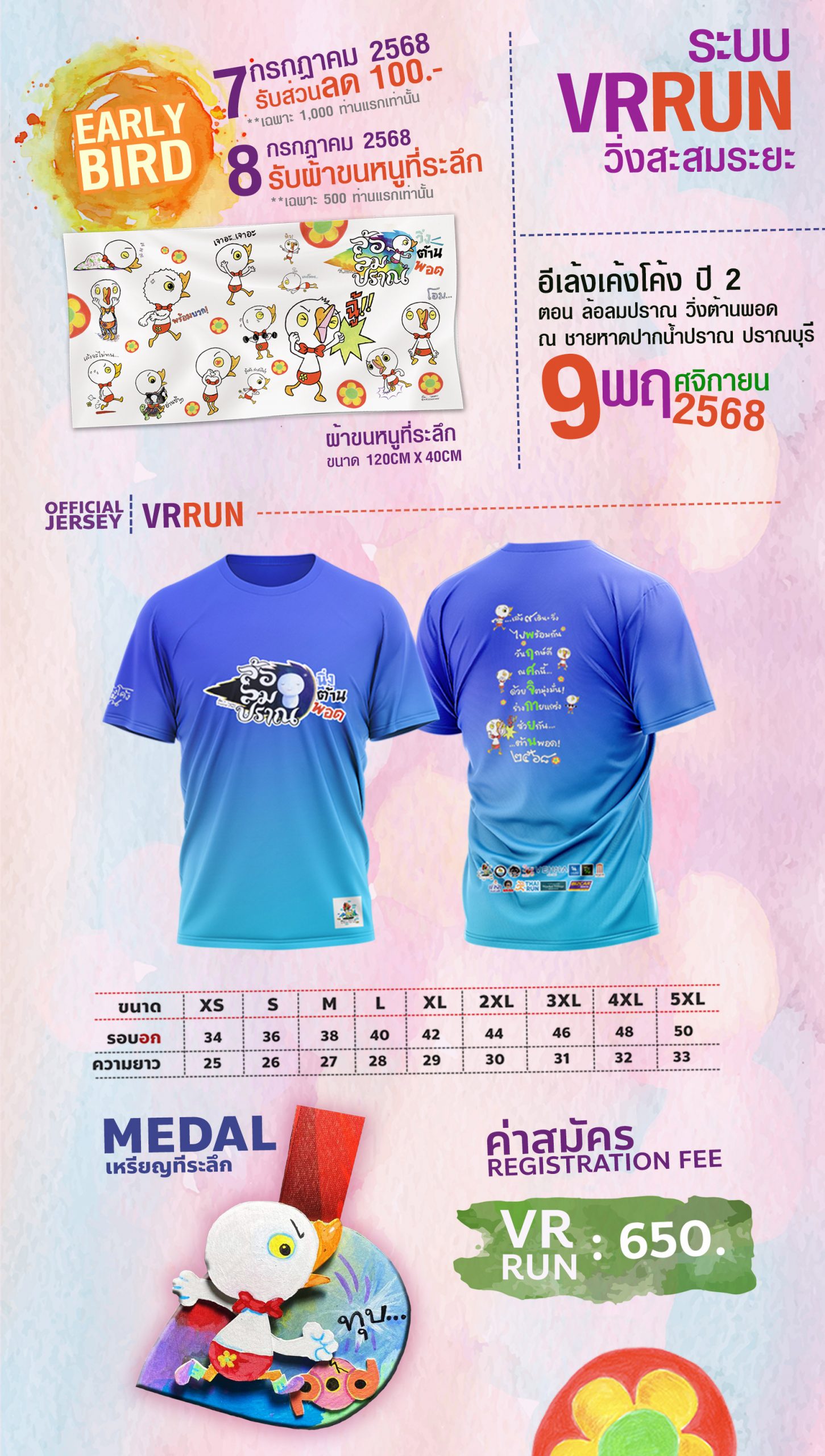 - วิ่งเก็บระยะ Virtual Run ค่าสมัคร 650 บาท (รวมค่าจัดส่งแล้ว)